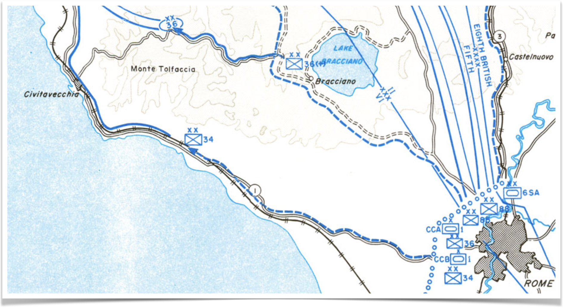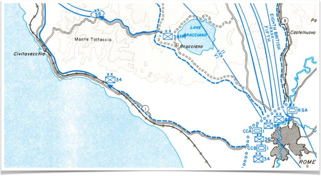 - German units began withdrawing to the north of Rome on June 2. ↩︎