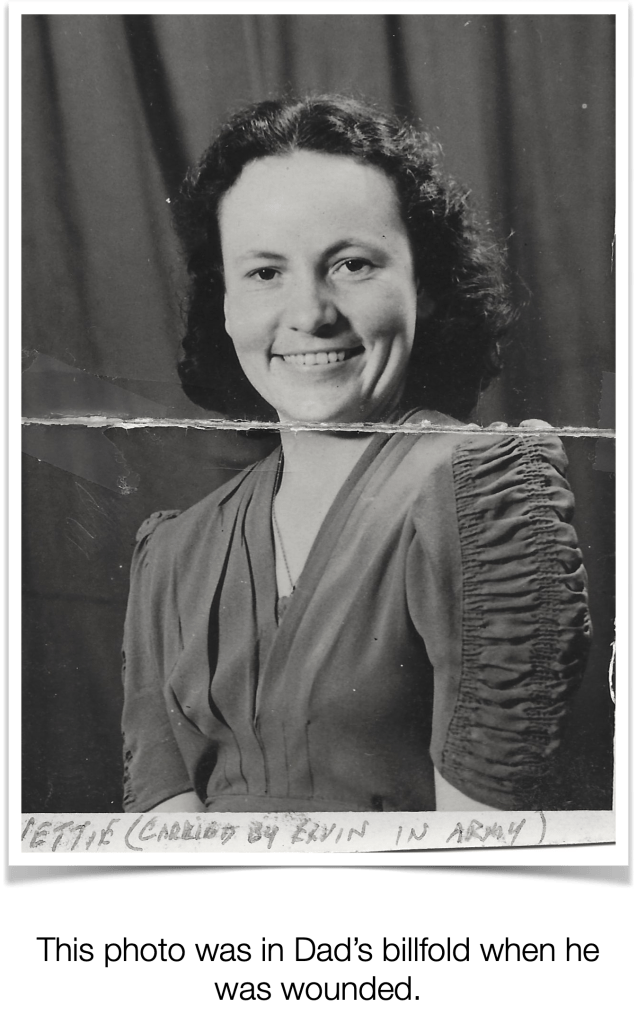 I lay there flat on my back. My side hurt terribly. I was weak and losing blood. I was getting cold. I began to realize that my wound was probably fatal, and I would never see Nettie or Terry again. How would Nettie be able to raise Terry without me? I would not get to see Terry grow up. How would Terry turn out? I loved them and missed them so much. I wanted to go home. I lay in the dirt and wept while my blood was running out, inside me and outside me, and German machine gun bullets were flying over me.